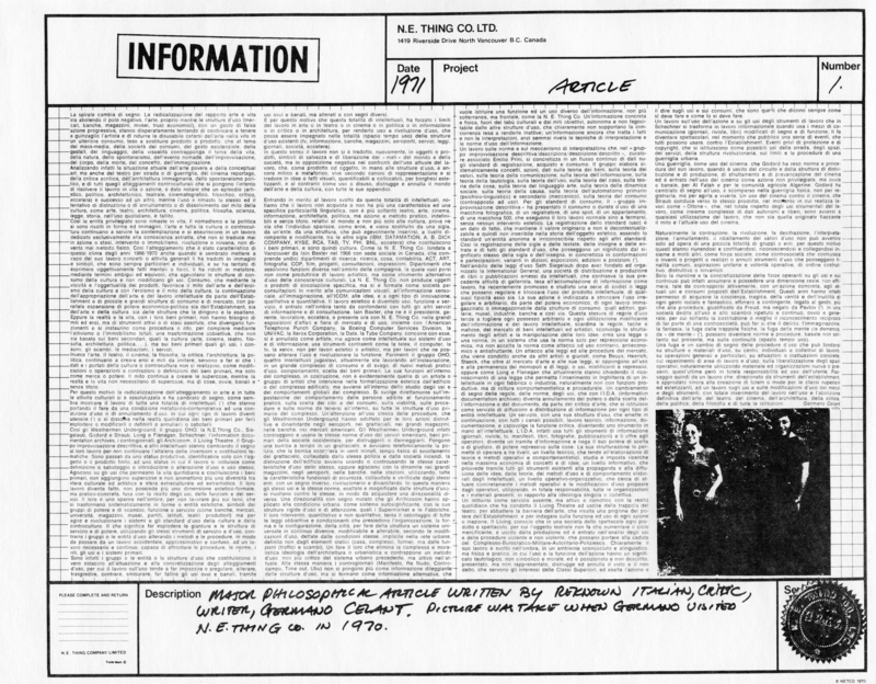 N.E. Thing Co. Ltd., "N.E. Thing Co. Ltd., Vol. 1," in IAINBAXTER&raisonnE, Item #1464, https://collections.uwindsor.ca/iain-baxterand_raisonne/items/show/1464 (accessed February 5, 2026).