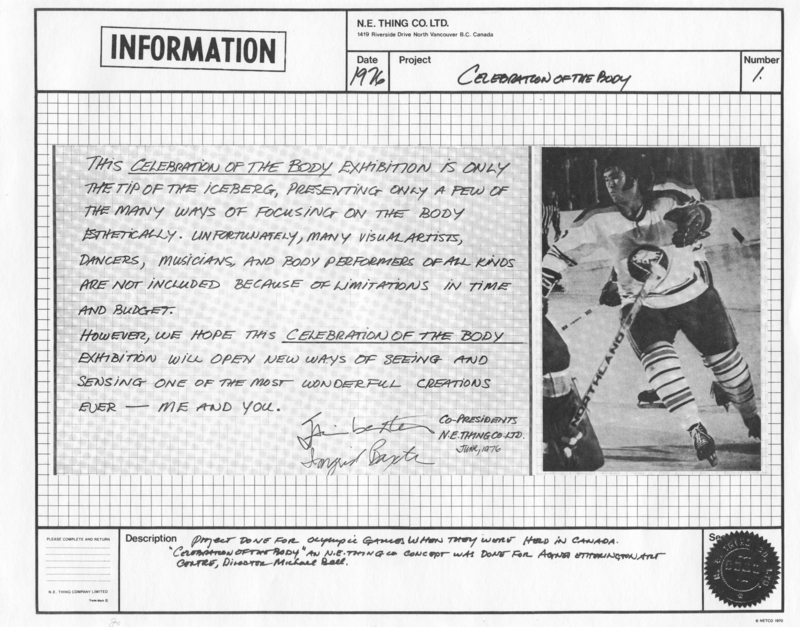 N.E. Thing Co. Ltd., and Jean-Christophe Ammann. N.E. Thing Co. Ltd., Vol. 1. Vancouver: N.E. Thing Co. Ltd., 1978.