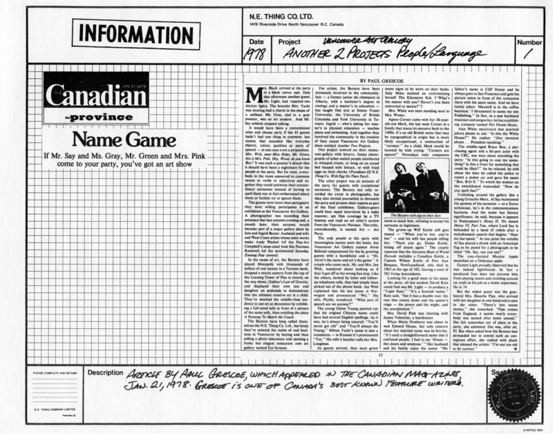 N.E. Thing Co. Ltd., "N.E. Thing Co. Ltd., Vol. 1," in IAINBAXTER&raisonnE, Item #1563, https://collections.uwindsor.ca/iain-baxterand_raisonne/items/show/1563 (accessed February 11, 2026).