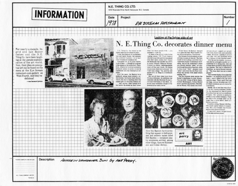 N.E. Thing Co. Ltd., "N.E. Thing Co. Ltd., Vol. 1," in IAINBAXTER&raisonnE, Item #1585, https://collections.uwindsor.ca/iain-baxterand_raisonne/items/show/1585 (accessed February 11, 2026).