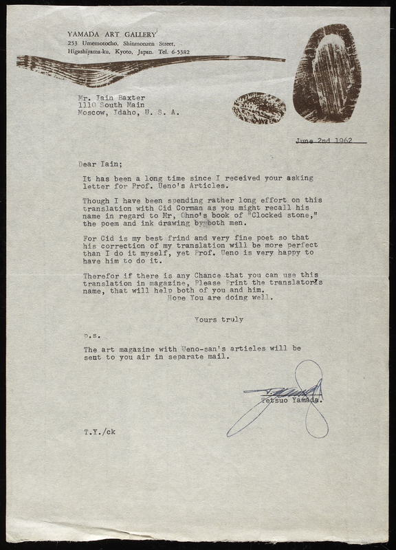 - Letter from Tetsuo Yamada to IAIN BAXTER&