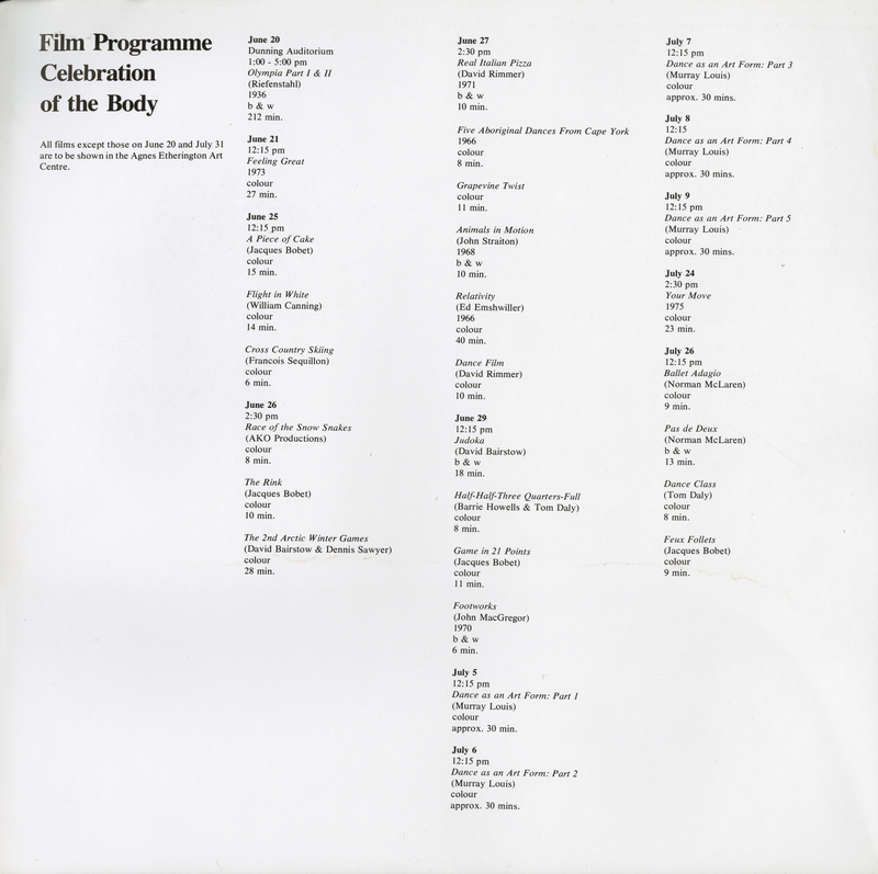 N.E. Thing Co. Ltd. 1976. Celebration of the Body. Kingston, ON: Agnes Etherington Art Centre.