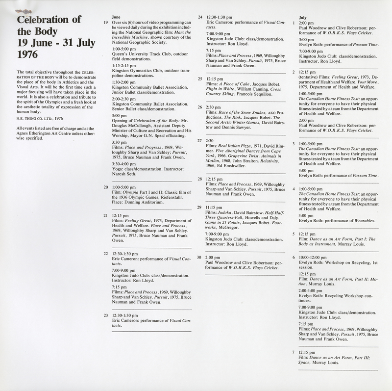 N.E. Thing Co. Ltd. 1976. Celebration of the Body. Kingston, ON: Agnes Etherington Art Centre.