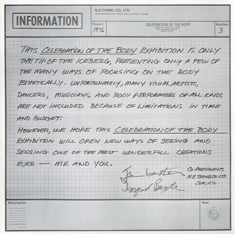 N.E. Thing Co. Ltd., "Celebration of the Body," in IAINBAXTER&raisonnE, Item #2227, https://collections.uwindsor.ca/iain-baxterand_raisonne/items/show/2227 (accessed February 10, 2026).
