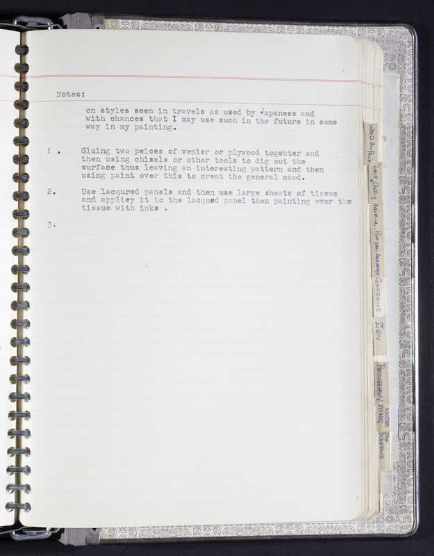 Located in Iain Baxter Fonds, Library & Archives: Box 2, File 14; Hardcover notebook containing notes on 110 pages, including 5 loose pages.