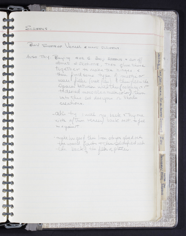 Located in Iain Baxter Fonds, Library & Archives: Box 2, File 14; Hardcover notebook containing notes on 110 pages, including 5 loose pages.