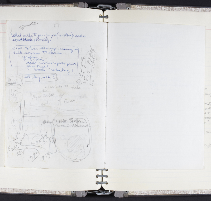 Located in Iain Baxter Fonds, Library & Archives: Box 2, File 14; Hardcover notebook containing notes on 110 pages, including 5 loose pages.