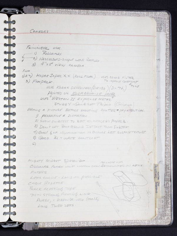 Located in Iain Baxter Fonds, Library & Archives: Box 2, File 14; Hardcover notebook containing notes on 110 pages, including 5 loose pages.