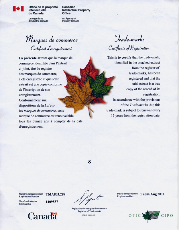 Certificate of Registration, August 1, 2011