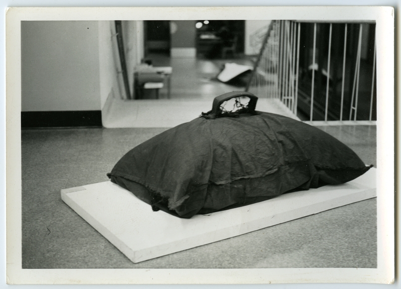 Documentation of "Carrying Case for Andy Warhol Pillow" in situ, MacKenzie Art Gallery, Regina, Saskatchewan [AL & IB&]