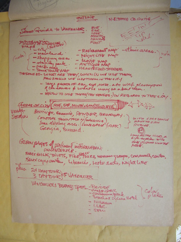 - Notes for unrealized "Sense Guide" to a city (Vancouver)