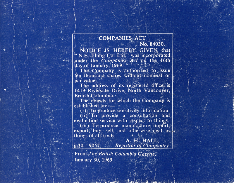 N.E. Thing Co. Ltd., "N.E. Thing Co. Ltd., Vol. 1," in IAINBAXTER&raisonnE, Item #288, https://collections.uwindsor.ca/iain-baxterand_raisonne/items/show/288 (accessed January 23, 2026).