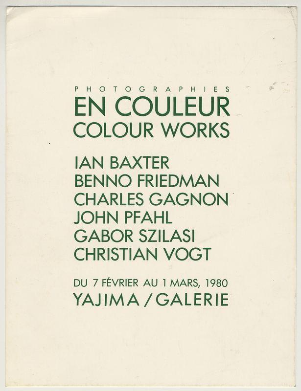 IAIN BAXTER&, "Yajima/ Galeries En Coulear/ Colour Works exhibition," in IAINBAXTER&raisonnE, Item #3326, https://collections.uwindsor.ca/iain-baxterand_raisonne/items/show/3326 (accessed January 11, 2026).