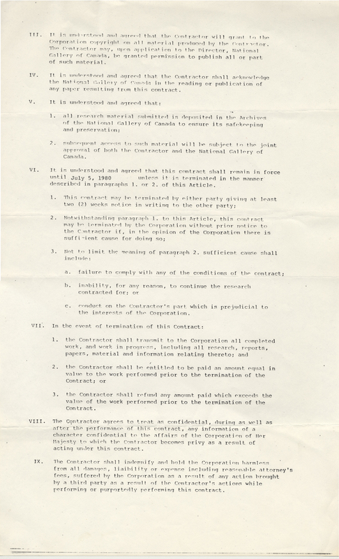 - Contract with National Gallery of Canada [photocopy]
