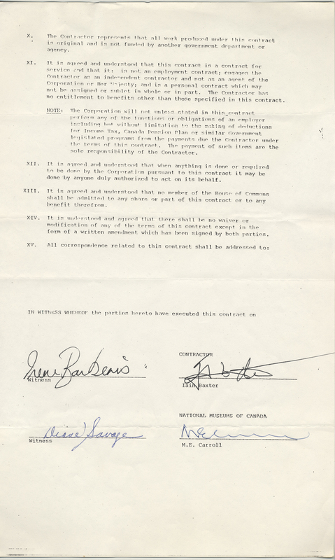 - Contract with National Gallery of Canada [photocopy] and letter