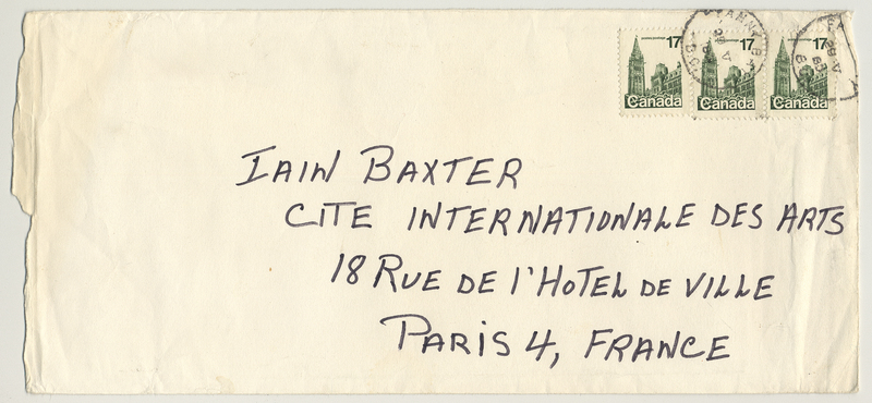 George, "General correspondence [envelope front]," in IAINBAXTER&raisonnE, Item #3380, https://collections.uwindsor.ca/iain-baxterand_raisonne/items/show/3380 (accessed January 14, 2026).