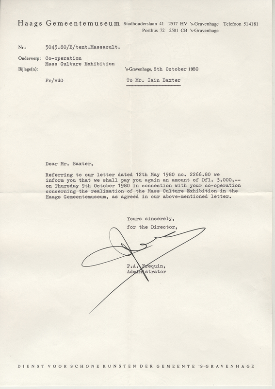 Unidentified, "General correspondence, Haags Gemeentemuseum, re. Mass Culture exhibition," in IAINBAXTER&raisonnE, Item #3413, https://collections.uwindsor.ca/iain-baxterand_raisonne/items/show/3413 (accessed February 6, 2026).
