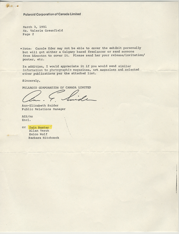 Box 23, File 12, Iain Baxter Fonds, E.P. Taylor Research Library and Archives, Art Gallery of Ontario, Toronto.