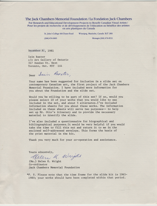 Wright, Helen K. , "General correspondence, Jack Chambers Memorial Foundation," in IAINBAXTER&raisonnE, Item #3484, https://collections.uwindsor.ca/iain-baxterand_raisonne/items/show/3484 (accessed January 14, 2026).
