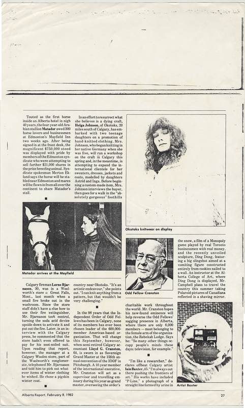 IAIN BAXTER&, "Media extension, [article clipping] Alberta report [page 27]," in IAINBAXTER&raisonnE, Item #3961, https://collections.uwindsor.ca/iain-baxterand_raisonne/items/show/3961 (accessed February 6, 2026).