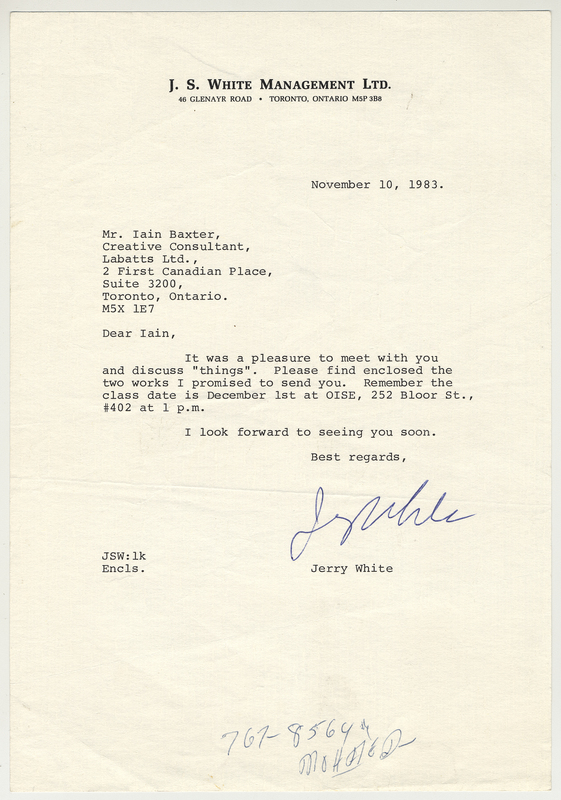 White, Jerry, "Correspondence, Jerry White Management Limited," in IAINBAXTER&raisonnE, Item #3966, https://collections.uwindsor.ca/iain-baxterand_raisonne/items/show/3966 (accessed February 6, 2026).