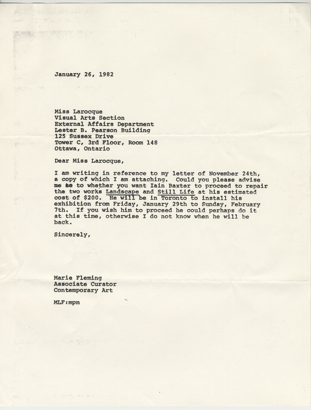 Fleming, Marie Le Sueur, "Correspondence, AGO, supporting correspondence with External Affairs," in IAINBAXTER&raisonnE, Item #3976, https://collections.uwindsor.ca/iain-baxterand_raisonne/items/show/3976 (accessed January 12, 2026).
