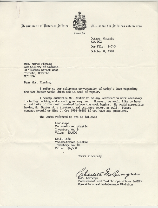 Fleming, Marie Le Sueur, "Correspondence, AGO, supporting correspondence with External Affairs," in IAINBAXTER&raisonnE, Item #3979, https://collections.uwindsor.ca/iain-baxterand_raisonne/items/show/3979 (accessed January 12, 2026).