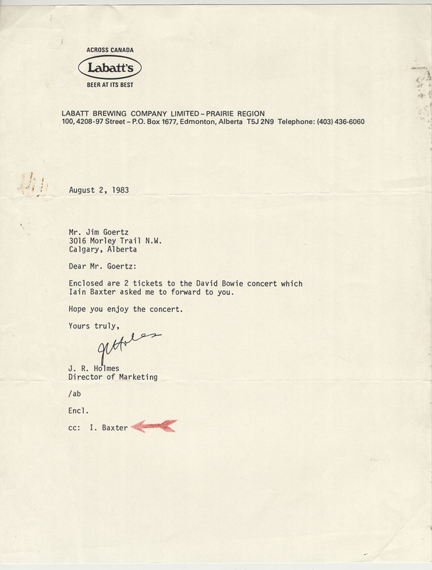 Holmes, J.R. , "Correspondence, Labatt's," in IAINBAXTER&raisonnE, Item #3982, https://collections.uwindsor.ca/iain-baxterand_raisonne/items/show/3982 (accessed January 12, 2026).