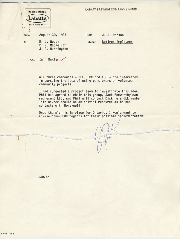Labatt's stuff, retired employees project outline correspondence and project outline with supporting documentation regarding Honeywell Retiree Volunteer Project [HRVP]