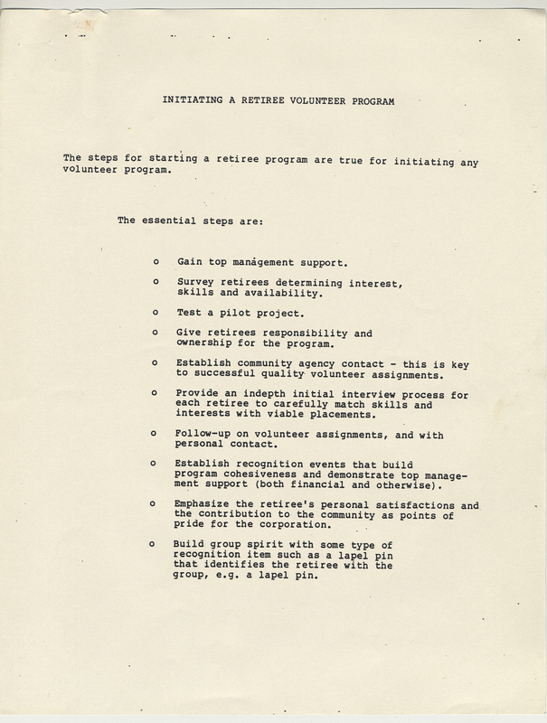 Labatt's stuff, retired employees project outline correspondence and project outline with supporting documentation regarding Honeywell Retiree Volunteer Project [HRVP]