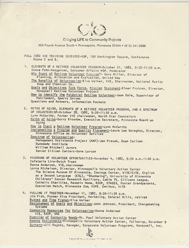 Labatt's stuff, retired employees project outline correspondence and project outline with supporting documentation regarding Honeywell Retiree Volunteer Project [HRVP]