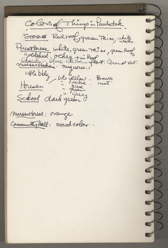 - Journal/ sketchbook, Colour of Things in Paulatuk, notes