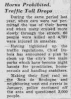 Small paragraph about tightening up traffic regulations in Paris, now leading into cleaning up the city of crime, citing the park's use by prostitutes and homosexuals