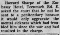 Howard Willard Sharpe pled guilty to gross indecency on March 31st and was sentenced to two years at the Kingston Penitentiary. He blames his actions on his "mental sickness" and asks to not be sent to the penitentiary.