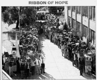 Massey Secondary School created a red ribbon on their lawn for National Red Ribbon Day as part of AIDS Awareness Week to raise awareness for HIV and AIDS. The student organizer, Aaron Lauzarus, got Amanda Gellman, the director of the AIDS Committee of Windsor to speak to the students and encourage them to educate themselves on the disease.