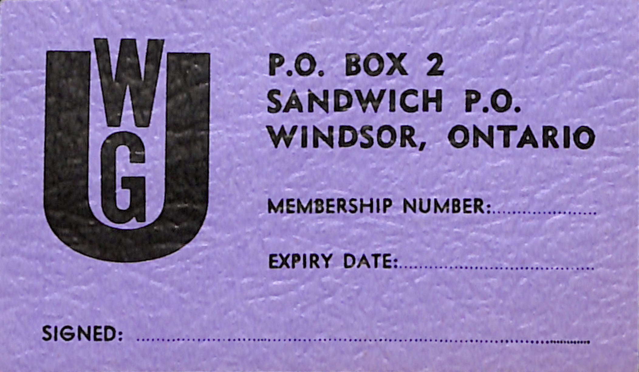 Membership card for the Windsor Gay Unity - a local queer activism group