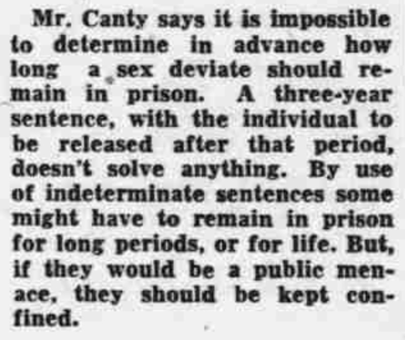 The clinic head in at a clinic in Detroit, Allan Canty, describes sex deviates, their origins, as well as the appropriate treatment plans and punishments for those that commit sex crimes.