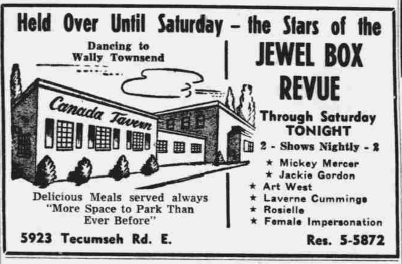 An advertisement announcing that the Jewel Box Revue will remain at Canada Tavern until the upcoming Saturday from its print and encourages readers to join them for any of their 2 nightly shows until the group's departure.