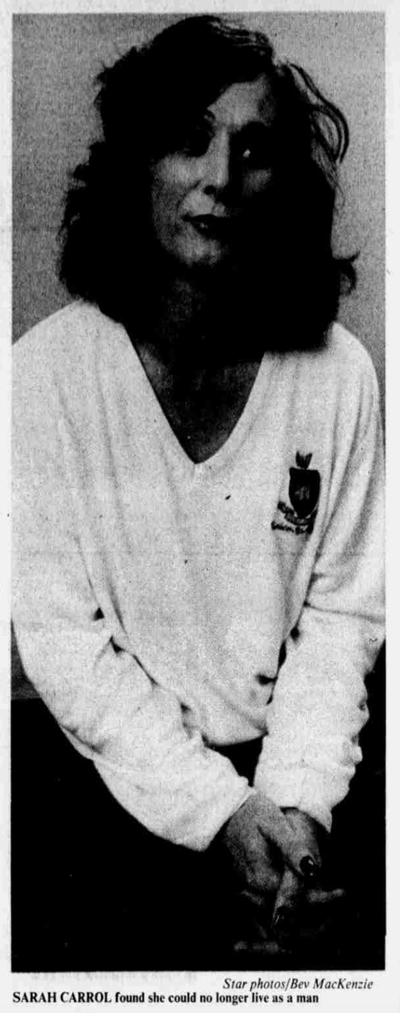 The article details Sarah's life story, from how she knew she was transgender to her sex change to her marriage and past careers. It also discusses the specifics of treatments she has had done and plans to have done. The article also defines transsexual, transvestite, and homosexual. The article references actress Christine Jorgensen, who had a sex-change surgery in 1952.