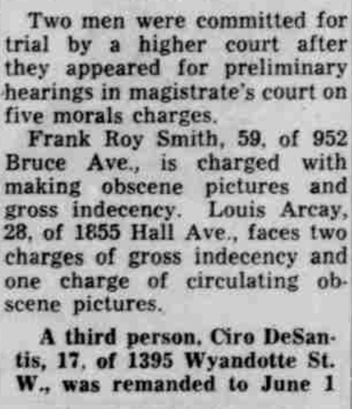 Two men went to trial on five moral charges. Frank Roy Smith, a 59 year old, was charged with taking inappropriate photos and gross indecency. Louis Arcay was charged with gross indecency and circulating these photos. Ciro DeSantis, a 17 year old, was remanded on a charge of gross indecency as well.