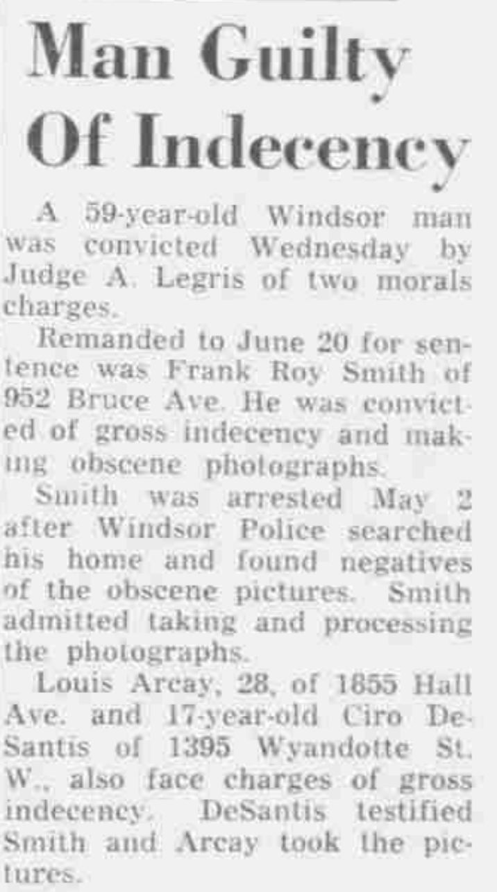 Frank Roy Smith was convicted on the Wednesday for both of his moral charges. He was originally arrested on May 2 after police found the indecent photos in his home. DeSantis testified Roy Smith and Arcay took the photos.